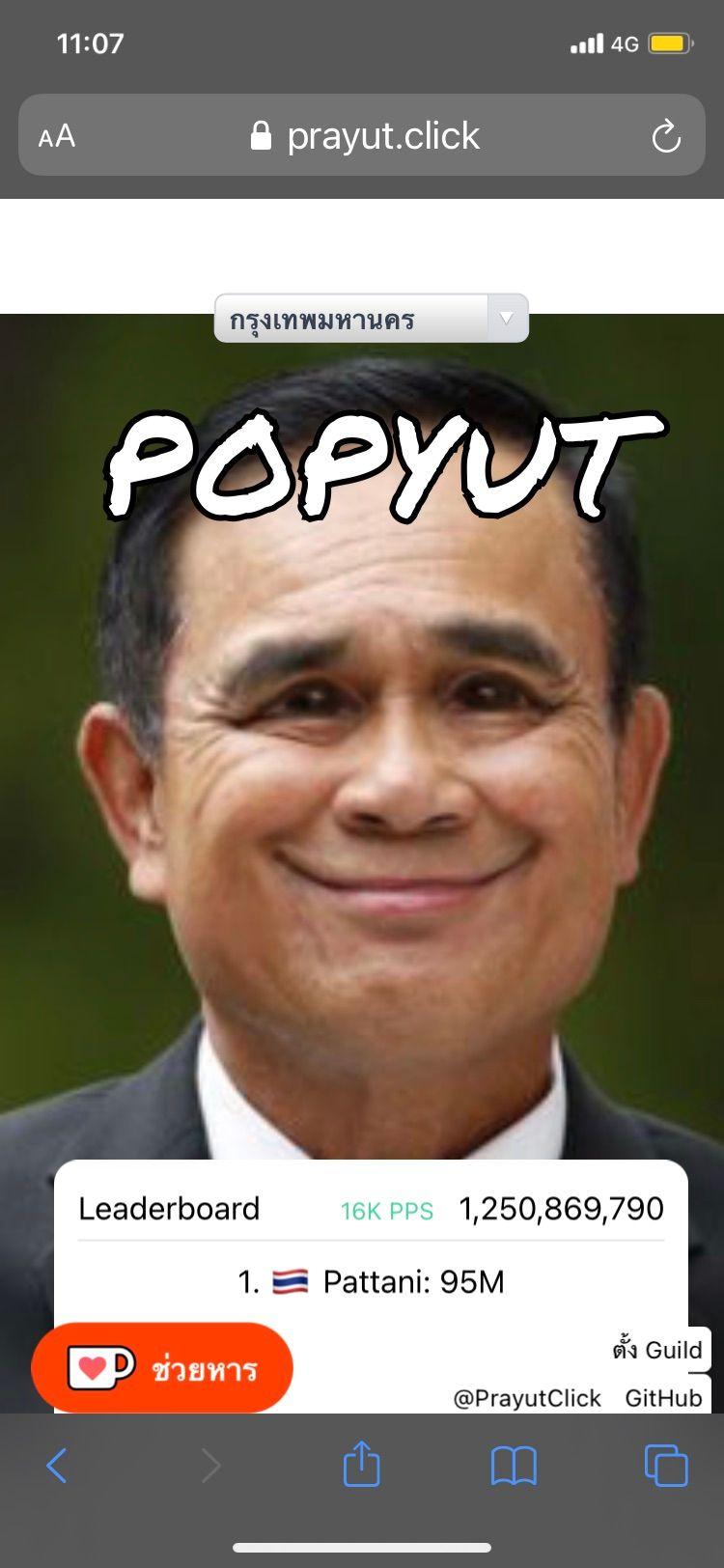 Figure 1: Screenshot of the game website featuring the Thai Prime Minister (prayut.click)