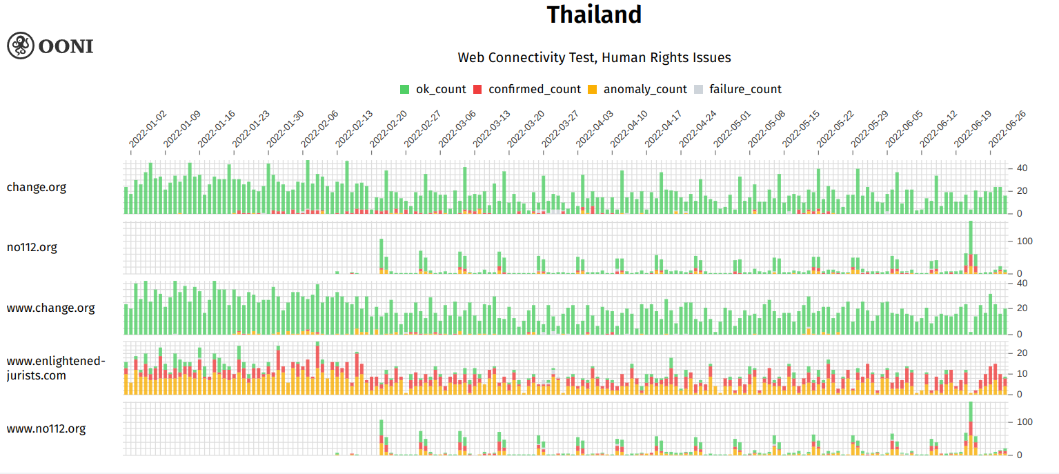 This report is aimed to portray the state of internet censorship in Thailand based on these reported incidents, as well as OONI measurements collected during the first half of 2022.