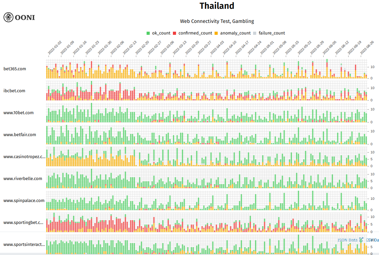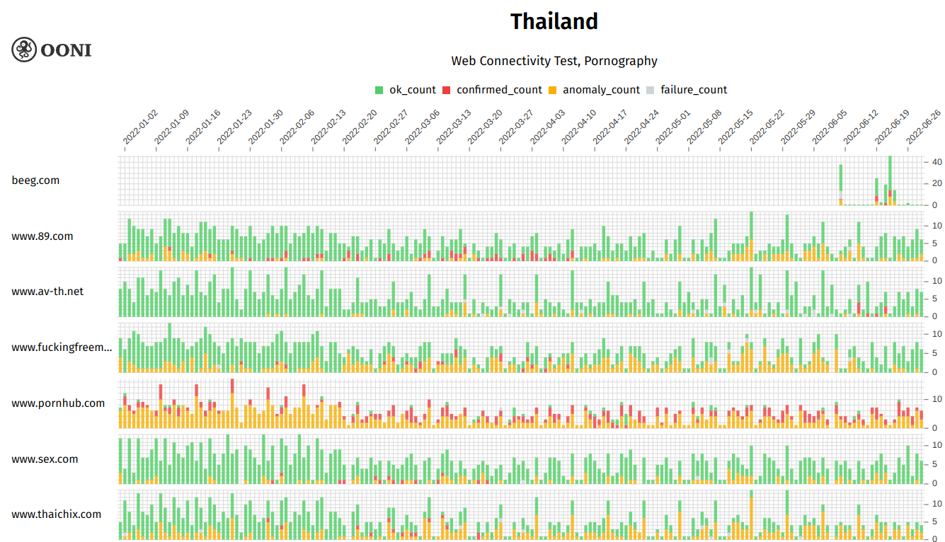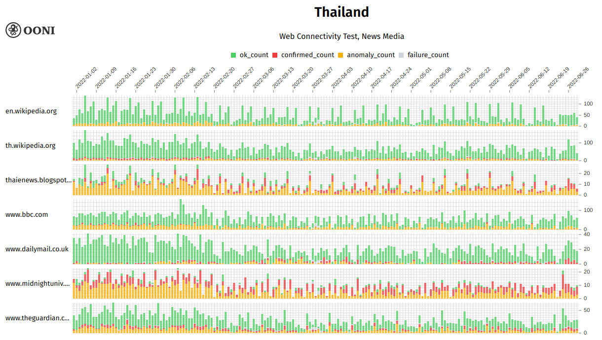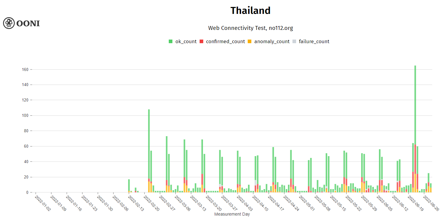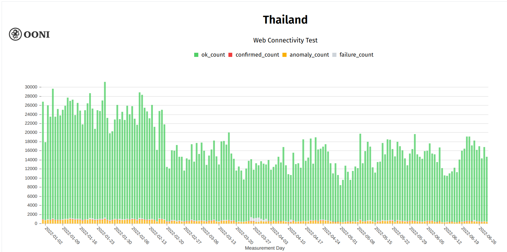 Figure 3: OONI measurements in Thailand, January-June 2022