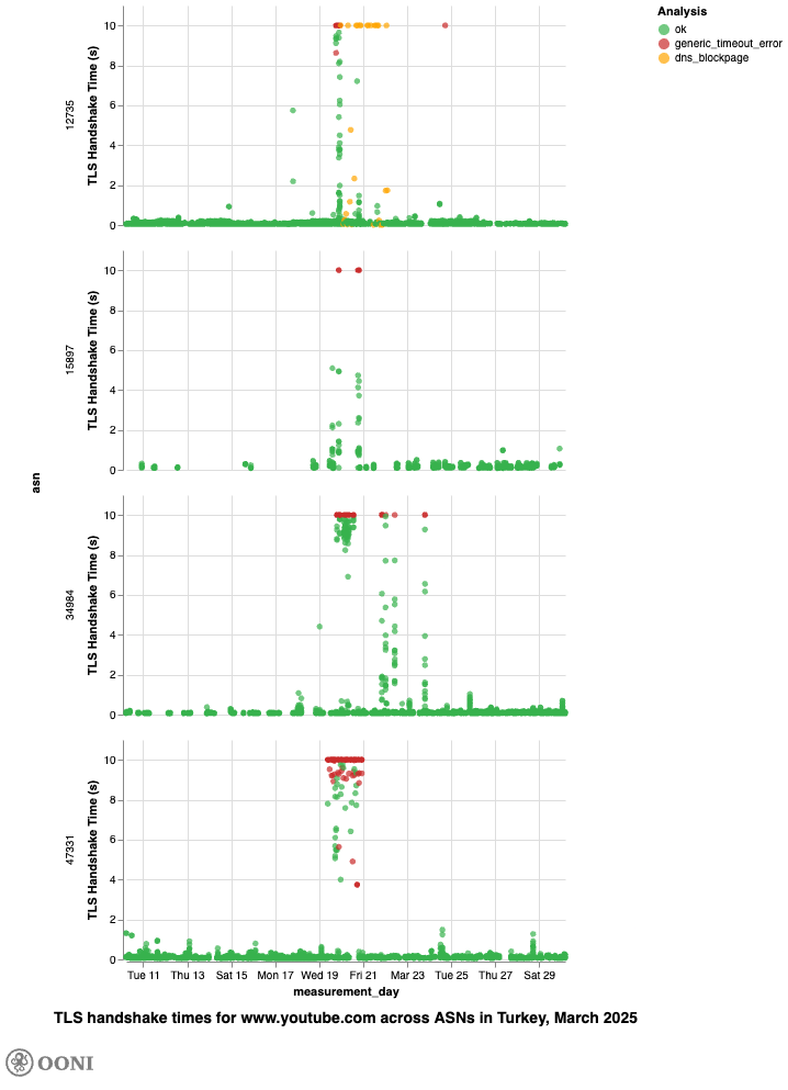 As part of this study, we analyzed OONI Web Connectivity data collected from Türkiye to investigate two throttling events reported on 19-20 March 2025 and on 8th September 2025.