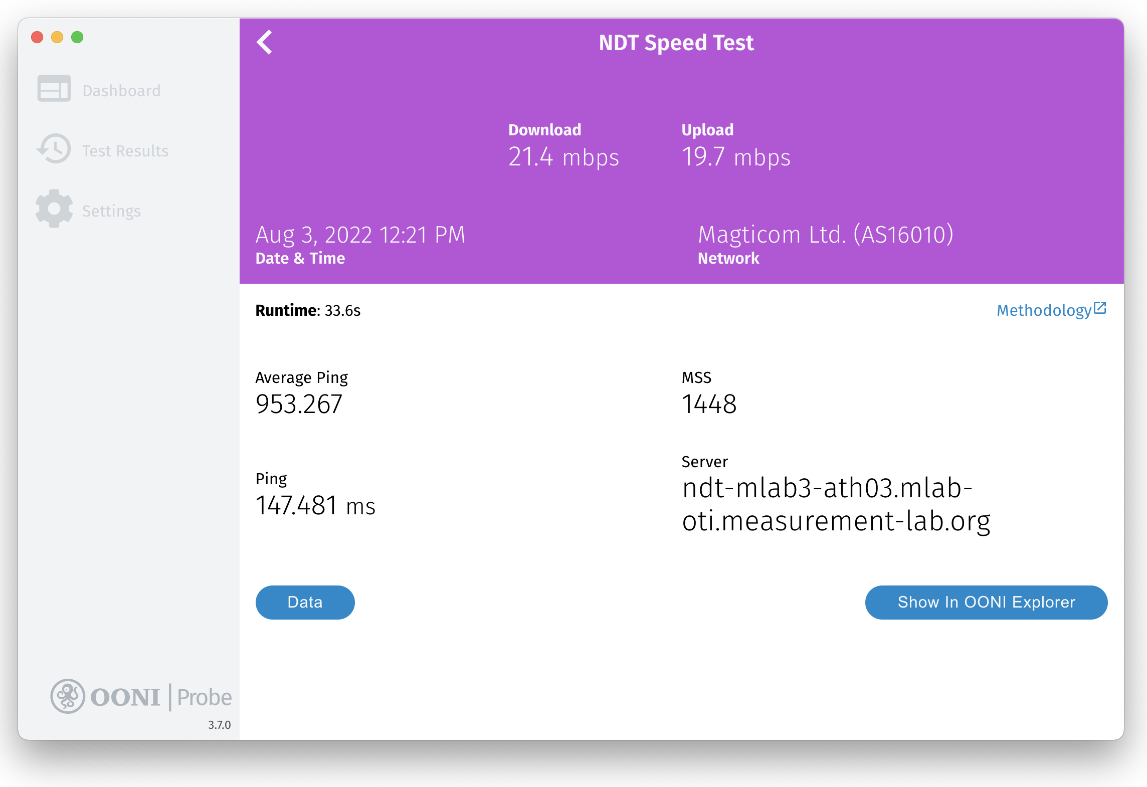 AS16010for Magticom Ltd.); - Network measurement data (which depends on the OONI Probe test).