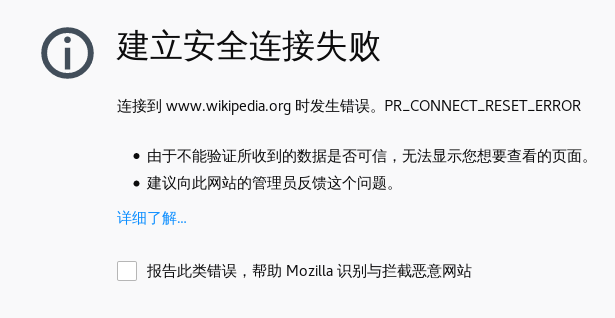 上面的curl测试连接到www.kernel.org(IP 147.75.46.191),但尝试使用www.wikipedia.org的SNI进行TLS握手。 正如我们从上面的输出中看到的,TLS handshake, Client hello一发出,连接就中断了。