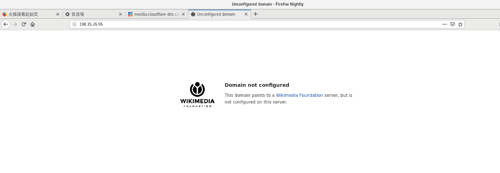 为了检查是否可以通过仅加密DNS流量来对维基百科域名的封锁阻止,我们尝试在Firefox中启用DNS over HTTPS。